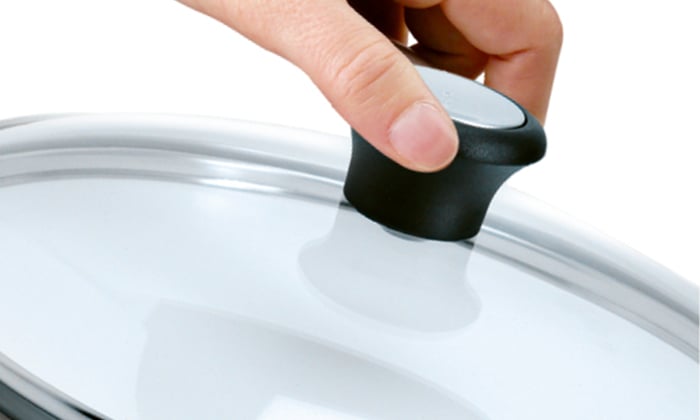 Proiectat și fabricat în Franța, capacul Tefal Exception îți va permite să monitorizezi cu ușurință procesul de gătire. Acesta dispune de un orificiu pentru eliberarea aburului și un mâner pentru manevrabilitate ușoară.