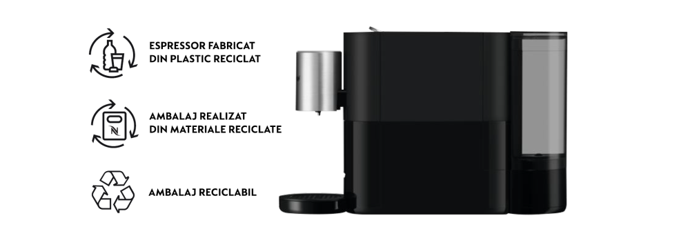 Ambalajul espressorului este realizat din materiale reciclate, nu conține plastic și este reciclabil.
