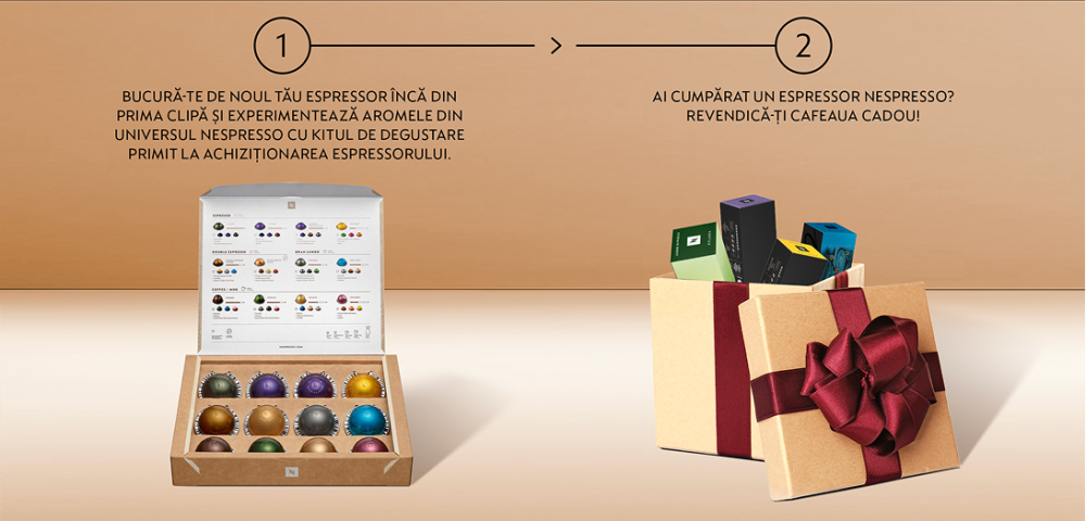 Voucher cafea de până la 150 lei la prima comandă. Cumpără un espressor participant la promoţie şi poți beneficia de un voucher cadou de până la 150 lei pentru achiziţionarea capsulelor de cafea. Mai multe detalii în regulament -> vezi detalii.