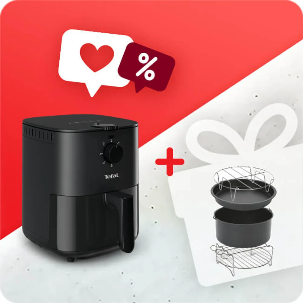 PACHET PROMO Friteuză cu aer cald Easy Fry Essential EY130815 & Set 4 accesorii Tefal XA112010, tava pizza, vas copt, gratar friptura, suport frigarui