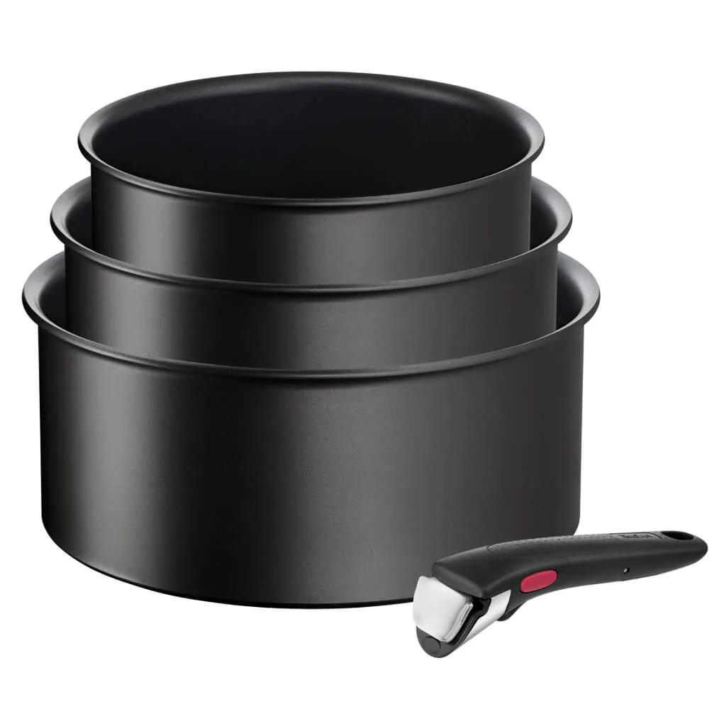 Set de 4 piese Tefal Ingenio Eco Resist L3979202, cratiță de 16/18/20 cm, mâner detașabil, indicator Thermo-Signal, compatibil cu inducția, înveliș antiaderent, negru