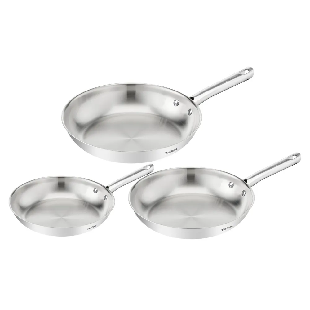 Set de tigăi cu 3 piese Tefal Duetto On B866S334, 20/24/28 cm, oțel inoxidabil, bază Thermo-Fusion™, inducție